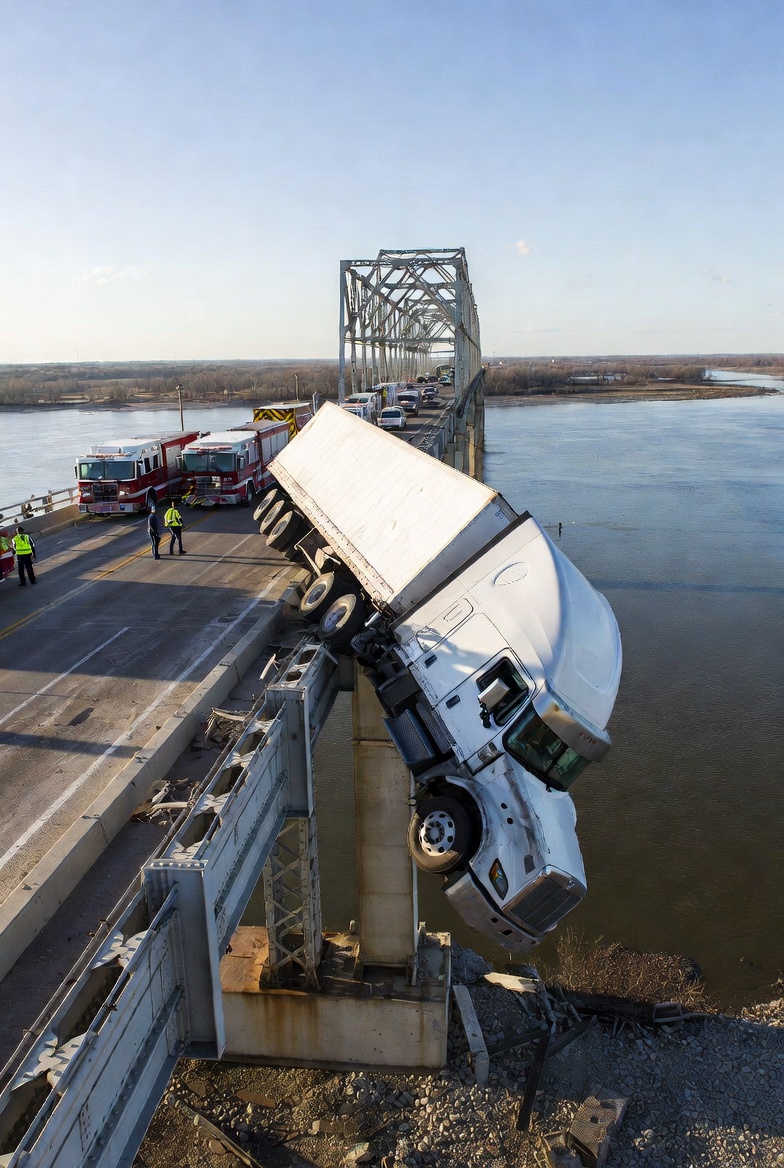 A dramatic and potentially fatal crash unfolded at the Kentucky–Illinois border near Cairo, Illinois, when a semi truck ran off the Ohio River bridge, sending the rig over the edge. Remarkably, the driver survived the terrifying incident, according to reports from Swinford Media Group. The Kentucky Transportation Cabinet confirmed the crash occurred on the Kentucky side of the bridge, triggering a swift emergency response. Crews worked efficiently to secure the scene and clear debris, allowing the bridge to fully reopen by evening. While the driver sustained injuries, no official update on their condition has been released as of Tuesday morning. Authorities have not yet disclosed what caused the truck to leave the roadway, leaving many questions unanswered after a crash that could have ended far differently.